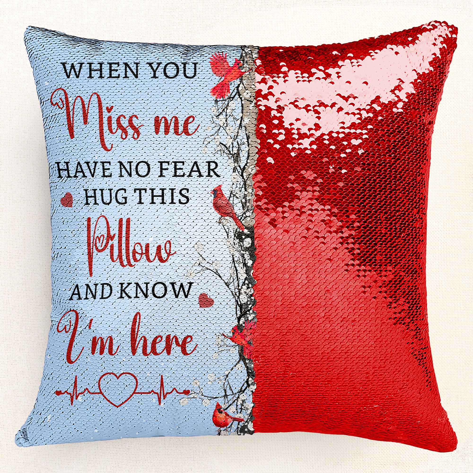 Memorial Pillow Hug This Pillow And Know I’m Here – Custom Photo Sequin Pillow