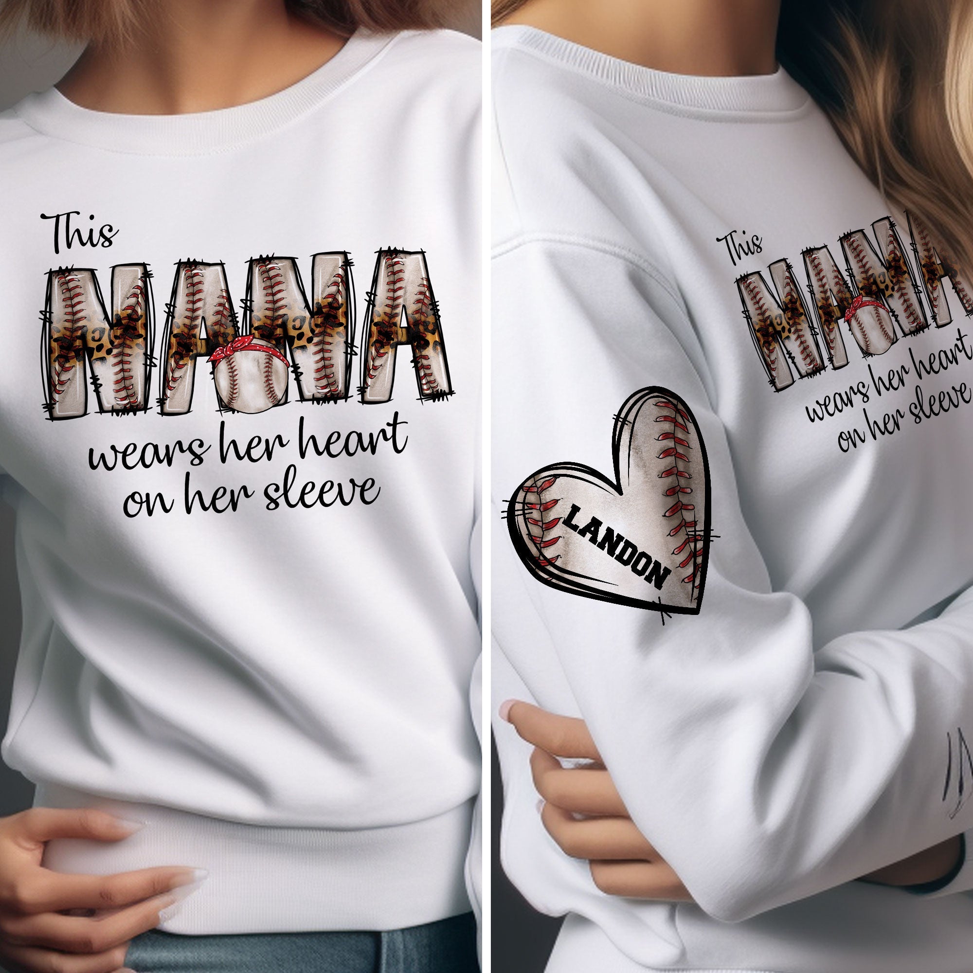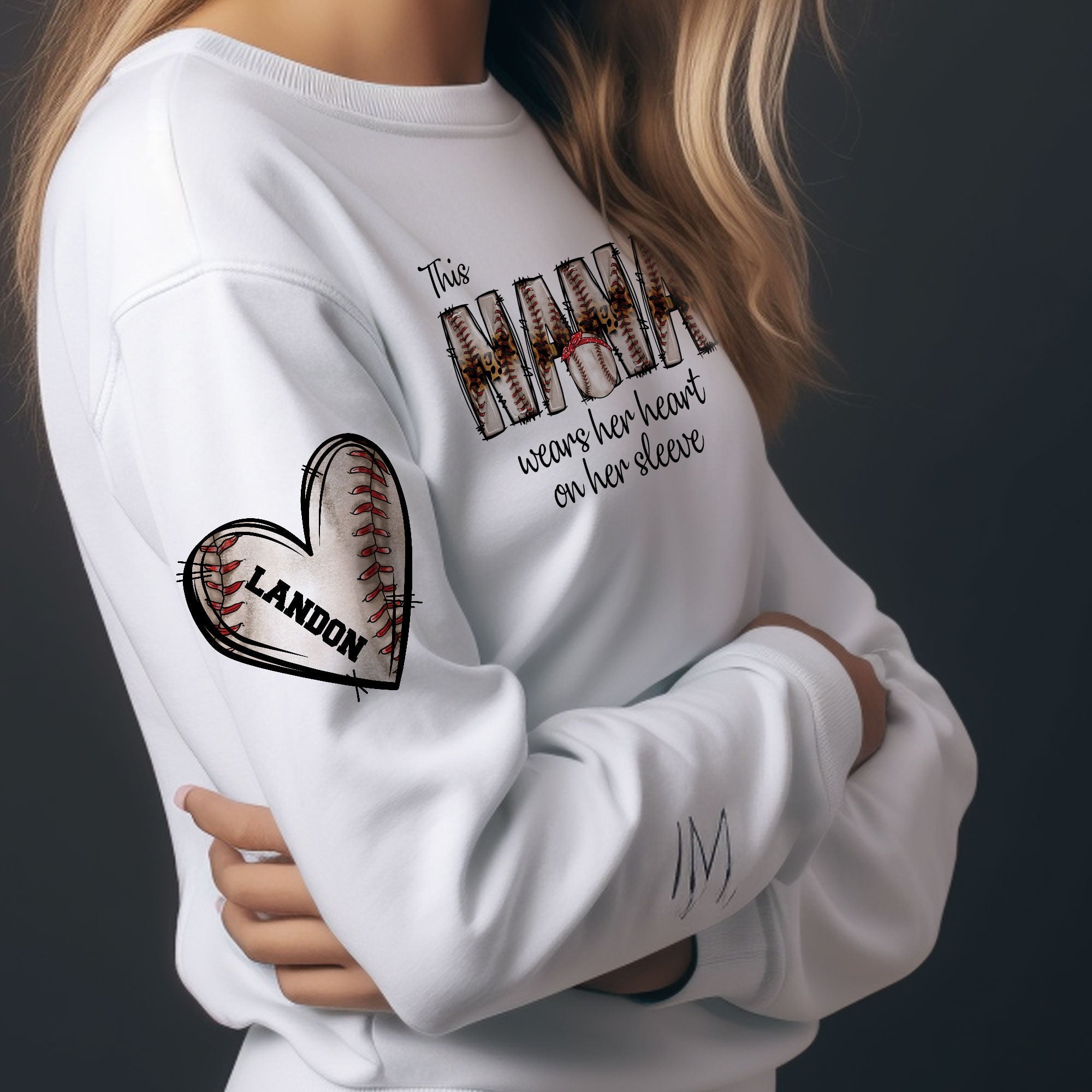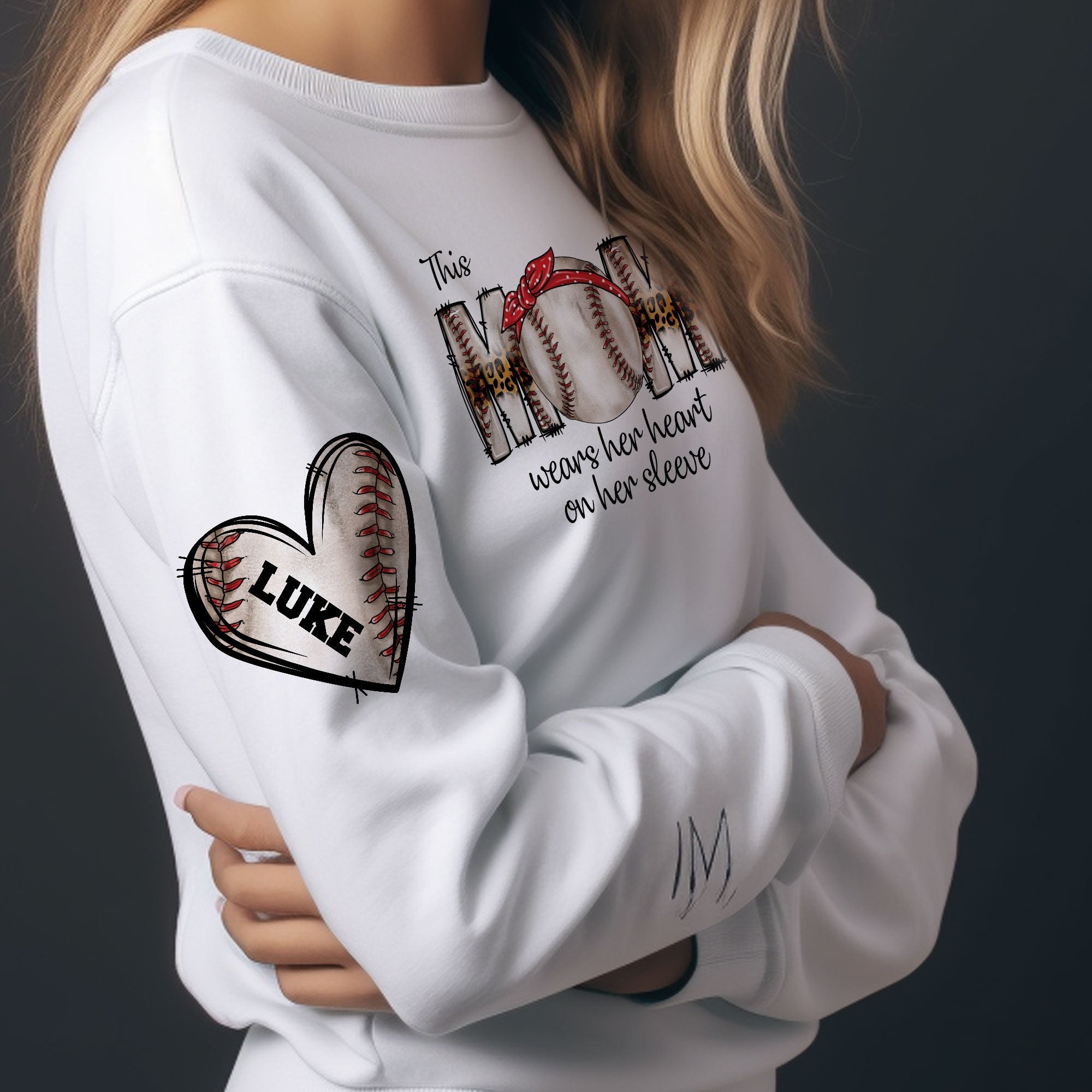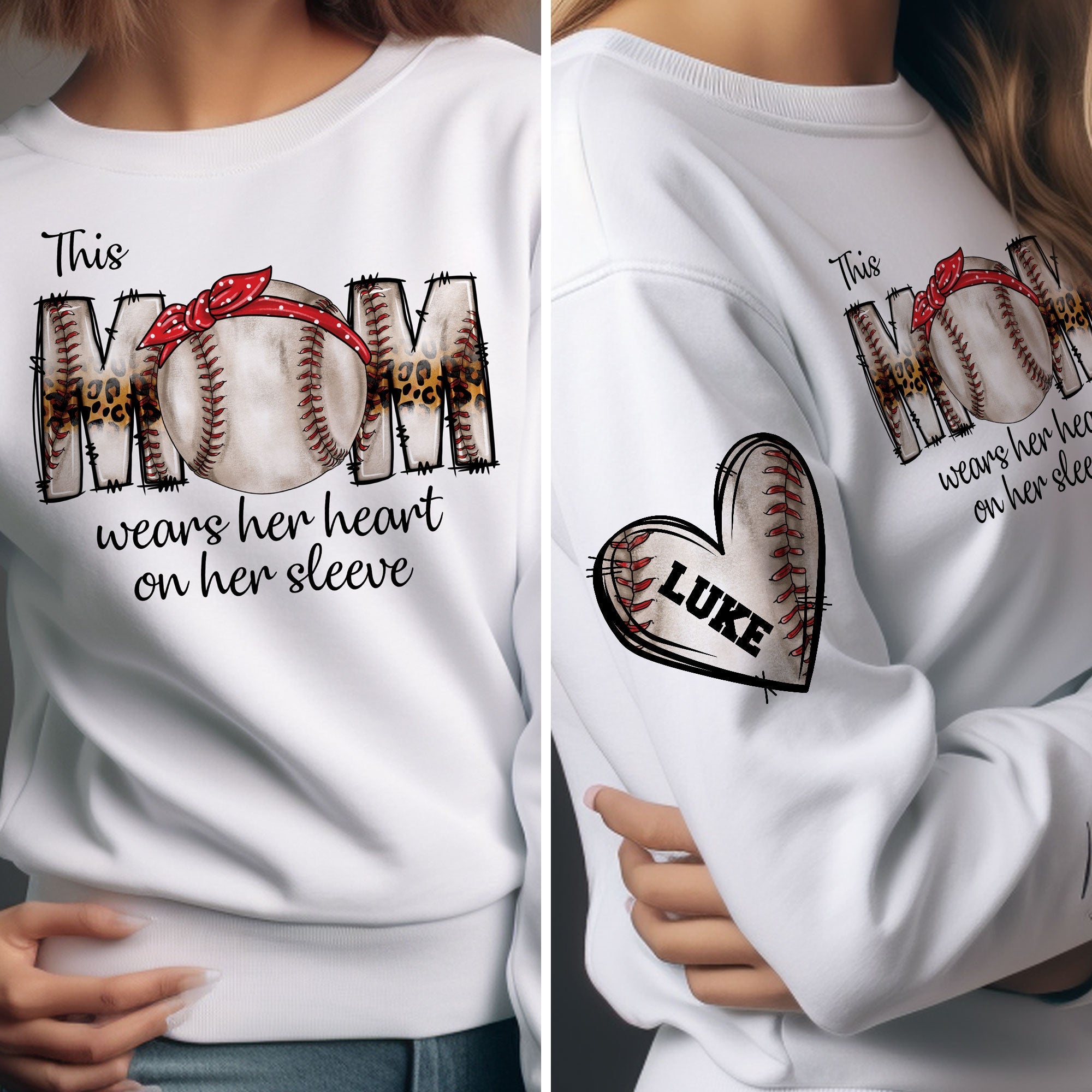 This Baseball Mom Wear Her Heart On Her Sleeve – Personalized Sweatshirt
